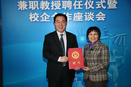 座談會(huì)上,中國(guó)石油大學(xué)(華東)校長(zhǎng)山紅紅對(duì)總經(jīng)理張積耀一行的到來(lái)表示歡迎,簡(jiǎn)要介紹了學(xué)校近幾年來(lái)的發(fā)展,并向張積耀總經(jīng)理頒發(fā)了兼職教授聘書。